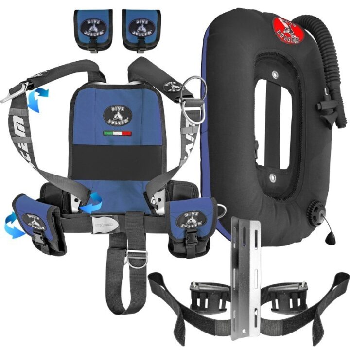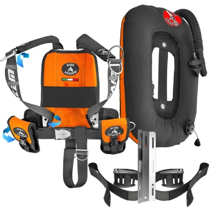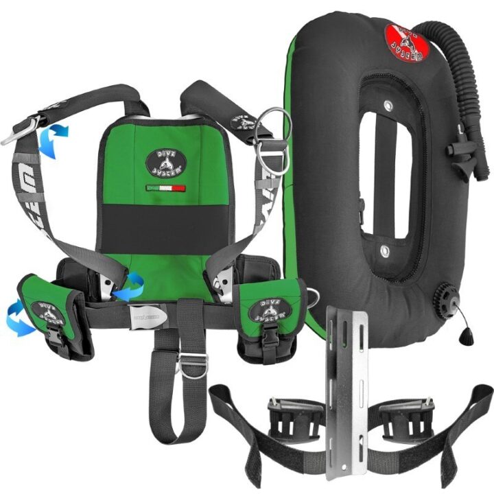 Advanced Technical BCD DIR, Quick-adjust “Quickly” system, Shoulder straps without buckles, no seams. Backplate and Single Tank Adapter in Stainless Steel or Aluminum. Full back Air Cell. Compatible with all DiveSystem technical wings. Backplate pocket for SMB, 2 pockets.