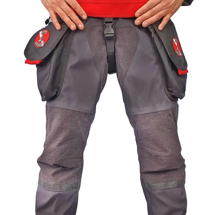 Trilaminate 4-1-4. Reinforcements in KEVLAR® on knees, crotch and buttocks. Front zipper with additional zipper for protection. Preformed Ergonomics knees, Diamond-shaped Underarm Gusset, Neck protector in neoprene with drainage system. Two Big Cargo pockets.