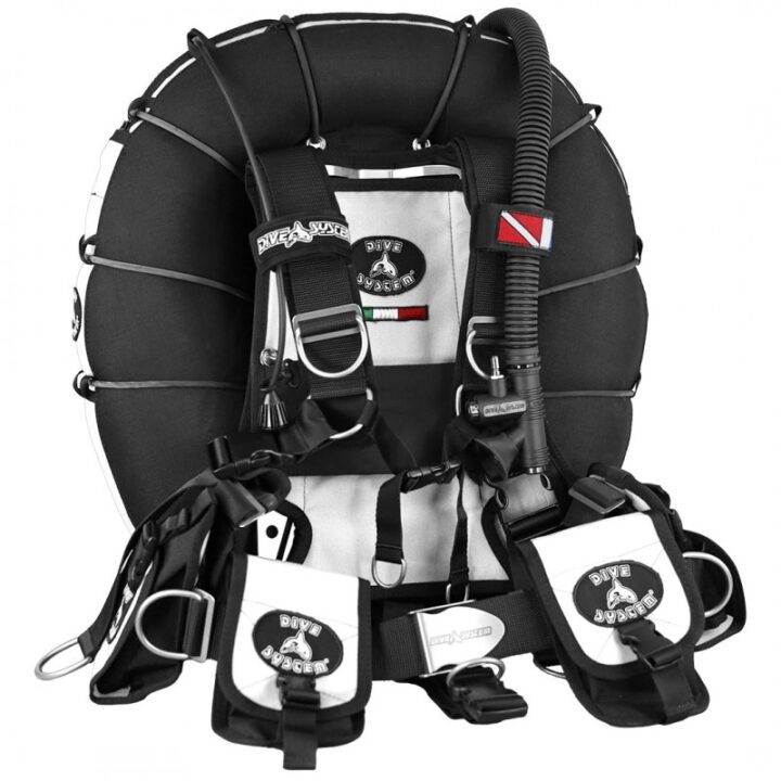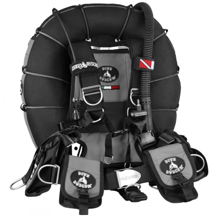 Technical BCD, Backplate and Single Tank Adapter in Stainless Steel or Aluminum. Full back Air Cell. Compatible with all DiveSystem technical wings. Backplate pocket for SMB, 4 pockets.