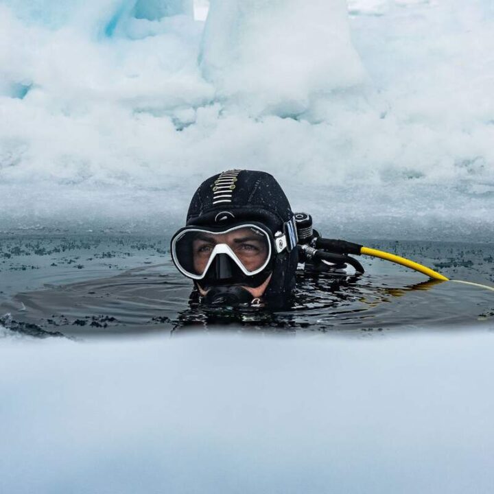 • Comfortable Fit Pressure reduction zones are incorporated into the silicone skirt at strategic points to help relieve the pressure of the mask on long dives.